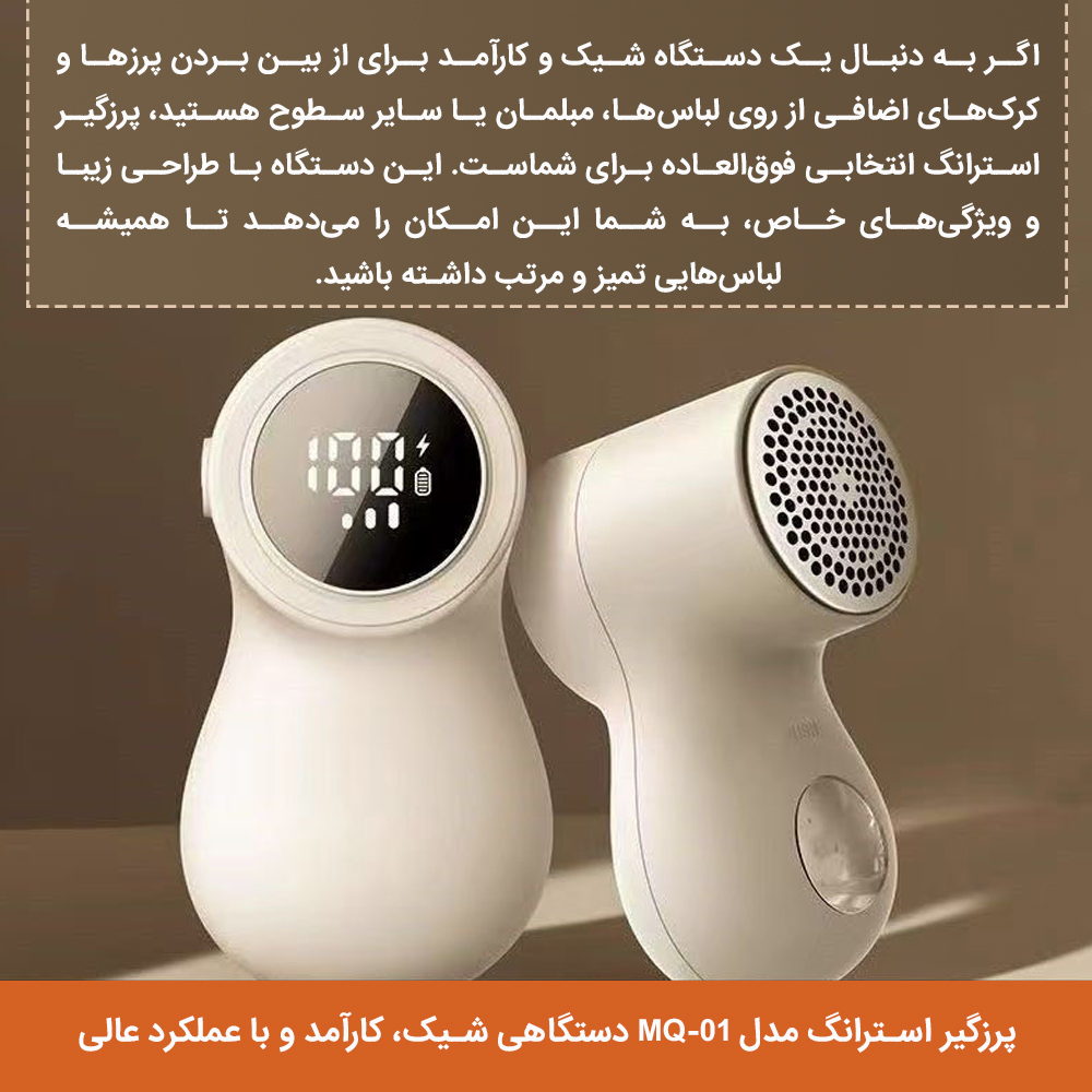 اگر به دنبال یک دستگاه شیک و کارآمد برای از بین بردن پرزها و کرکهای اضافی از روی لباسها، مبلمان یا سایر سطوح هستید، پرزگیر استرانگ مدل MQ-01 انتخابی فوقالعاده برای شماست. این دستگاه با طراحی زیبا و ویژگیهای خاص، به شما این امکان را میدهد تا همیشه لباسهایی تمیز و مرتب داشته باشید. در ادامه ویژگیهای برجسته این پرزگیر را معرفی میکنیم: